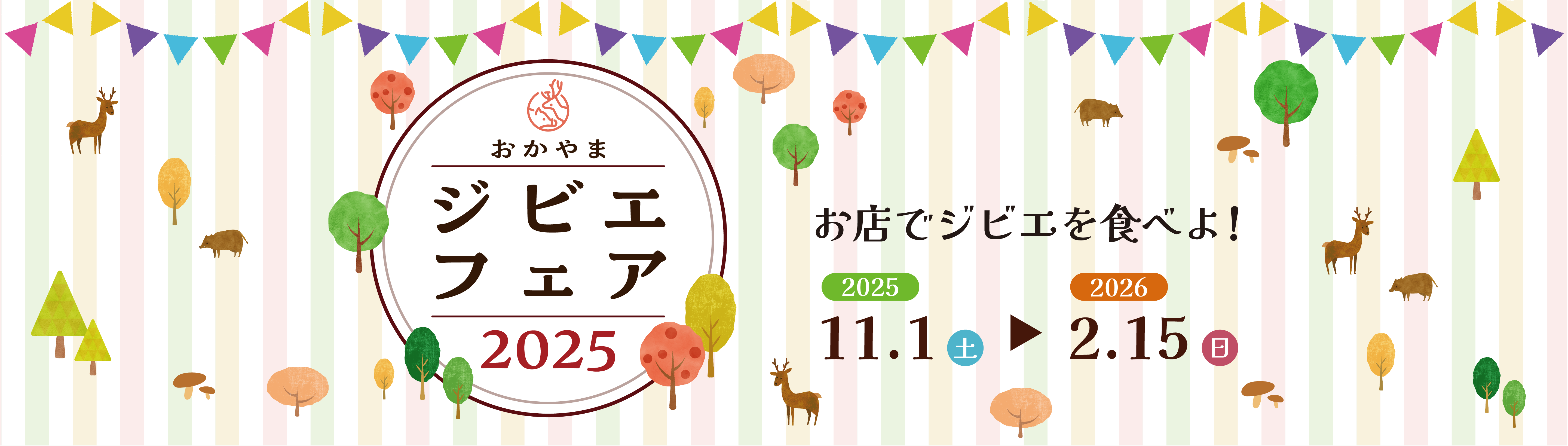 おかやまジビエを使用した料理を提供する店舗を対象におかやまジビエフェアを開催します。